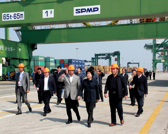 在江陰港區(qū)4、5號碼頭前,孫春蘭書記詳細(xì)詢問江陰港區(qū)碼頭、堆場的建設(shè)情況,并對汽車整車進(jìn)口項(xiàng)目進(jìn)展等情況進(jìn)行了全面深入了解。孫書記指出,江陰港區(qū)獲批成為汽車整車進(jìn)口口岸來之不易,要求充分發(fā)揮江陰港區(qū)得天獨(dú)厚的地理優(yōu)勢和區(qū)位優(yōu)勢,用足、用好國家賦予的政策,加快推進(jìn)整車進(jìn)口業(yè)務(wù)。外貿(mào)集團(tuán)將按孫書記指示精神,全力以赴,加快各項(xiàng)基礎(chǔ)設(shè)施建設(shè),努力爭取今年七月一號實(shí)現(xiàn)第一批整車進(jìn)口到岸,為海西建設(shè)、福建發(fā)展增添新的動力。