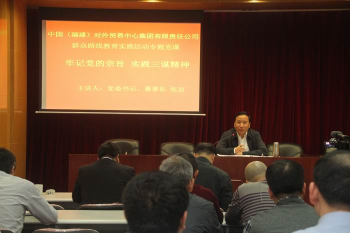3月28日下午,外貿集團黨委書記、董事長張忠同志為集團黨員干部上“牢記黨的宗旨實踐三謀精神”為主題的教育實踐活動專題黨課。集團領導班子成員、總部副科級以上黨員干部和權屬公司黨員代表近百人參加了此次黨課。