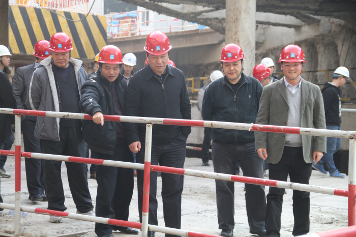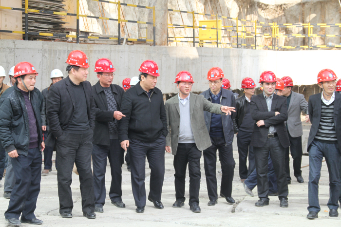 海西商務大廈項目承建方中建海峽發展有限公司總經理江建瑞(右四)陪同集團張忠董事長(左四)、陳軍華總經理(左二)等集團領導視察工地