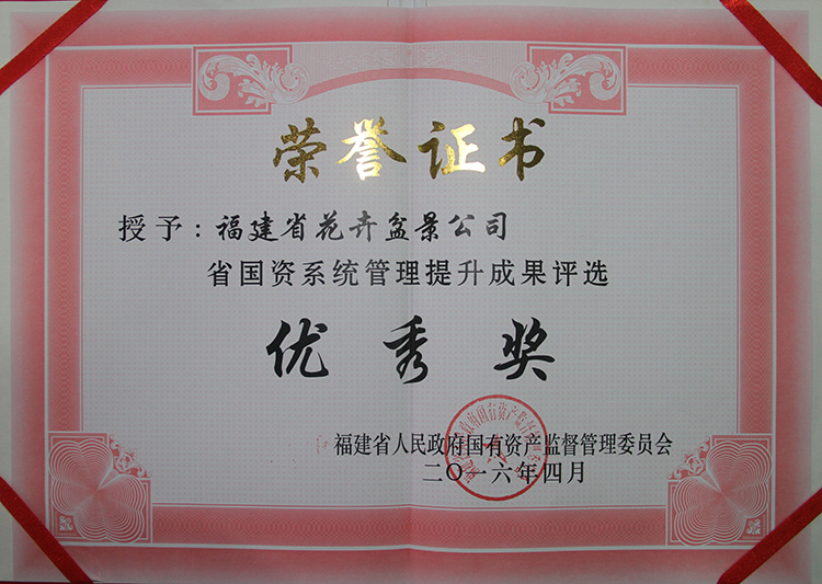 福建省花卉盆景公司榮獲省國(guó)資委“管理提升成果評(píng)選優(yōu)秀獎(jiǎng)”
