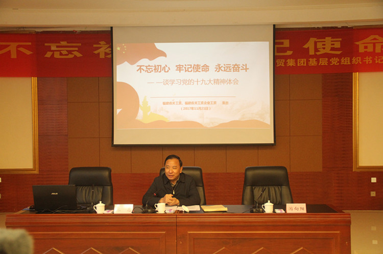 省關(guān)工委副主任、省關(guān)工委企業(yè)工委主任張忠給外貿(mào)集團(tuán)黨員干部宣講黨的十九大精神