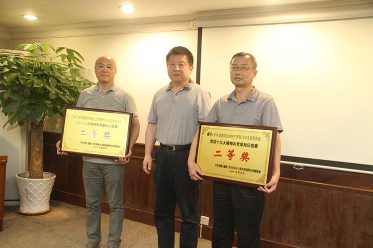 會上,首先為榮獲省屬企業優秀共產黨員、優秀黨務工作者和先進基層黨組織稱號的單位和個人頒獎,其中漳州公司黨總支榮獲“省屬企業先進基層黨組織”稱號,段軍東、徐良才同志榮獲“省屬企業優秀共產黨員”稱號,郭東亮、諶春順同志榮獲“省屬企業優秀黨務工作者”稱號。之后,表彰了集團“黨的十九大精神和黨章知識競賽”獲獎單位,其中漳州公司黨總支榮獲一等獎,華欣公司、隆發公司黨支部獲得二等獎,集團第四黨支部、集團第三黨支部、華浩公司黨支部獲得三等獎。