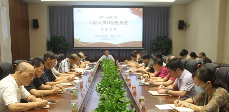 為深入貫徹落實省紀委監委有關通知精神和任務部署,推動集團系統廣大干部職工更好地學習領會、遵守執行《中華人民共和國公職人員政務處分法》(以下簡稱“《政務處分法》”),8月21日上午,外貿集團紀委組織開展了《政務處分法》專題宣講活動,集團中層領導干部、全體紀檢監察干部以及部分職工代表參加。