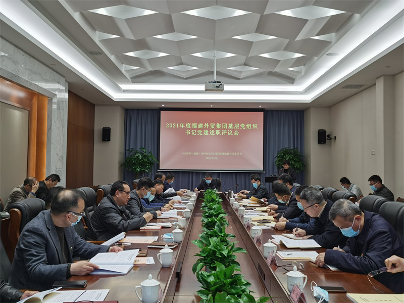 為全面加強企業黨的建設,福建外貿集團黨委于3月7日上午召開2021年度基層黨組織書記黨建述職評議會。集團黨委書記、董事長、總經理游向陽及集團黨委成員、各基層黨組織書記、相關職能部門負責人和黨員職工代表參加會議。省國資委黨群工作處有關同志到會指導。