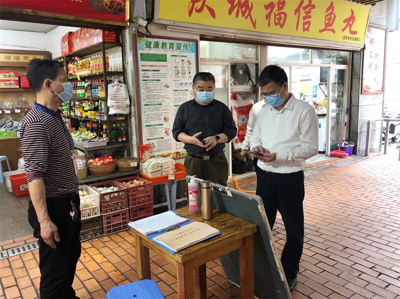 游向陽一行先后來到福建外貿(mào)大廈、國貿(mào)廣場、“鄉(xiāng)總農(nóng)品”體驗中心和慶城農(nóng)貿(mào)市場,實地檢查疫情防控措施落實的相關(guān)情況。每到一處,游向陽都仔細(xì)查看測量體溫、佩戴口罩、健康碼查驗、消毒消殺等防疫舉措,并認(rèn)真聽取有關(guān)負(fù)責(zé)同志關(guān)于人員進(jìn)出、防疫物資儲備、冷鏈溯源、食品安全等相關(guān)情況的介紹。